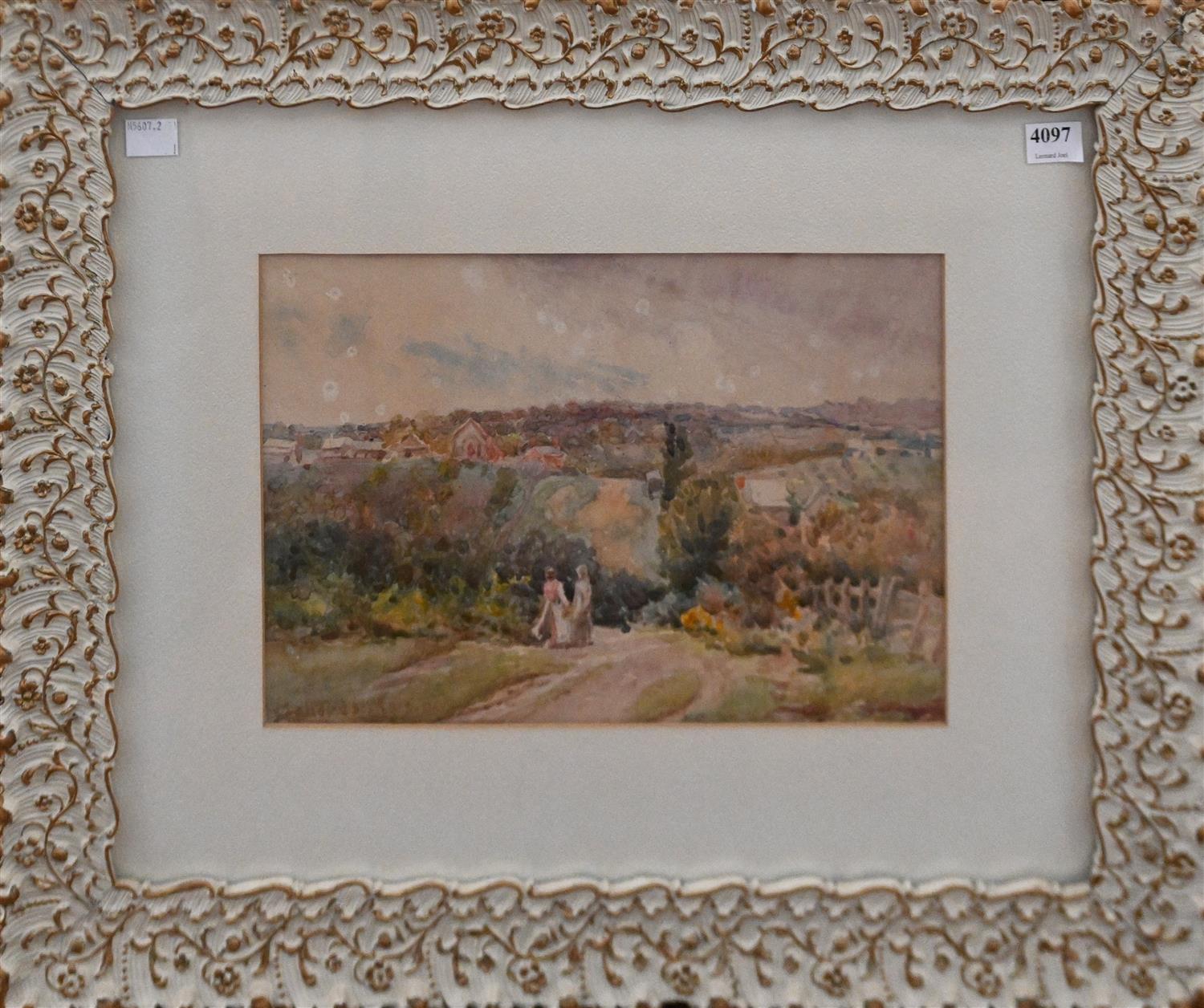 WALTER WITHERS, TWO LADIES ON A WALK 1904, WATERCOLOUR, SIGNED AND DATED LOWER LEFT, 20.5 X 30.5CM, FRAME SIZE: 44 X 54CM