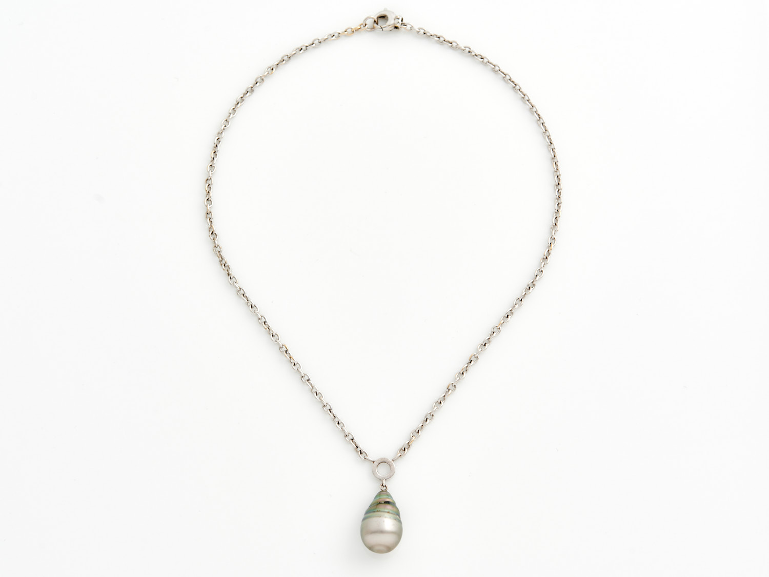 A PEARL PENDANT NECKLACE IN 18CT WHITE GOLD, 440MM,19.3GMS