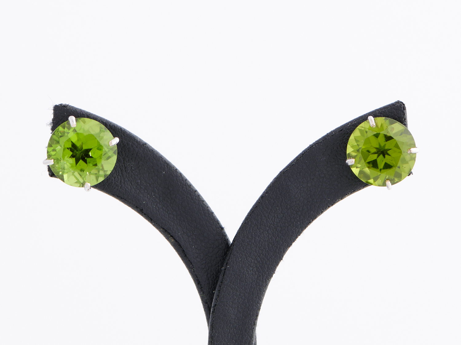 A PAIR OF PERIDOT EARRINGS IN 18CT WHITE GOLD, THE PERIDOT TOTALLING 11.08CTS, TO POST AND BUTTERFLY FITTINGS