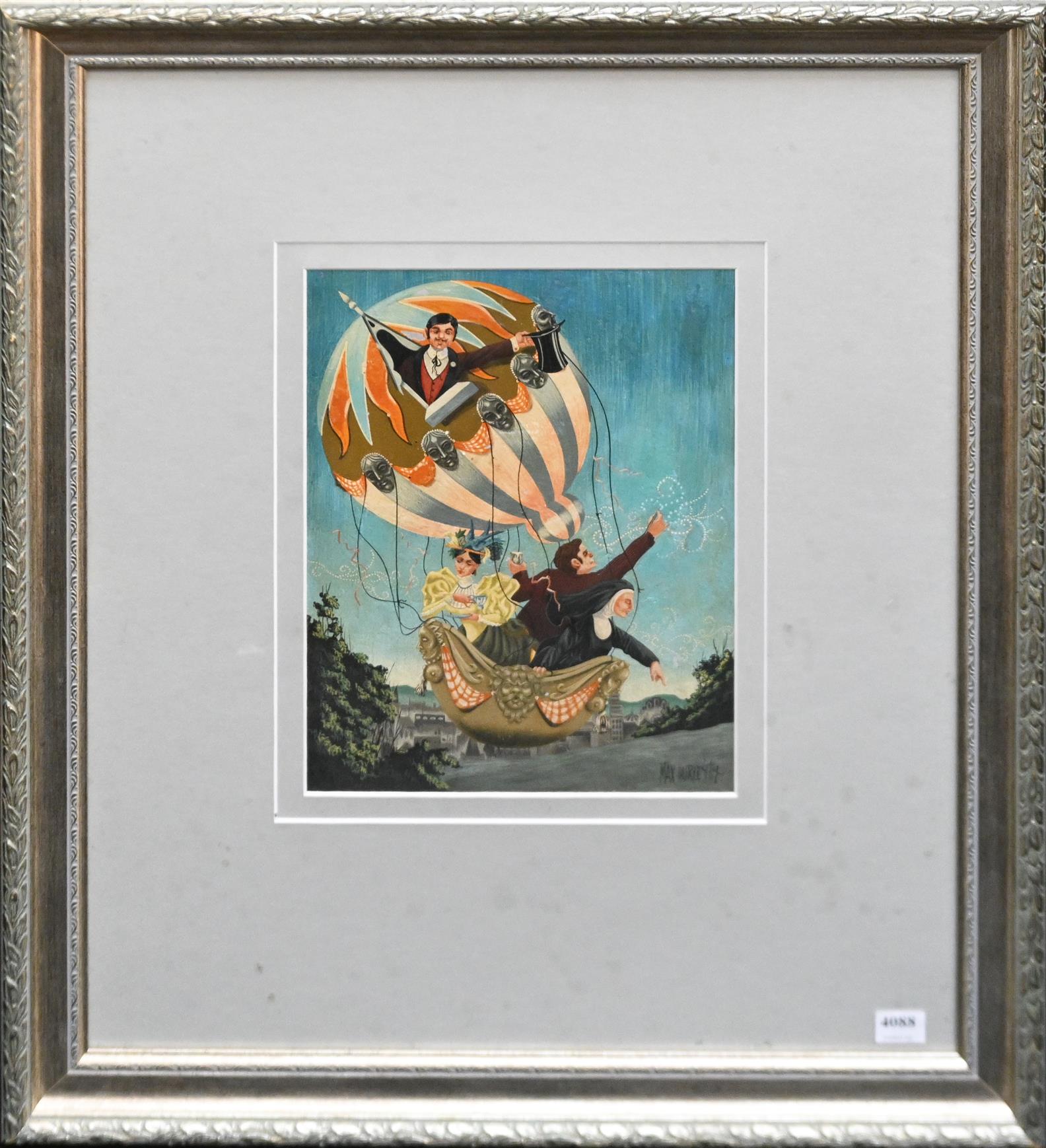 MAX HURLEY, BALLOON TEA PARTY 1969, OIL ON CARD, SIGNED AND DATED LOWER RIGHT, 29.5 X 22CM, FRAME SIZE: 66 X 55CM