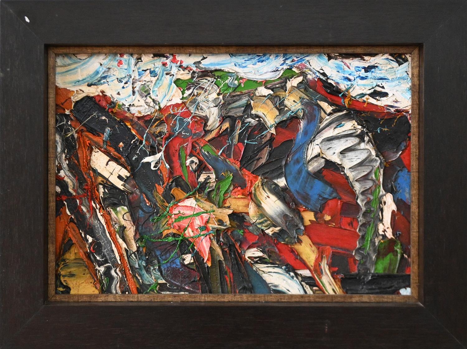 § DEREK O'CONNOR, SMALLER DAY 1992, OIL ON CANVAS, SIGNED, TITLED AND DATED VERSO, 26 X 38CM, FRAME SIZE: 35 X 47CM