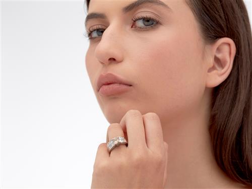 Surrounding diamonds approximately F-G colour, VS clarity as graded within the confines of the mount