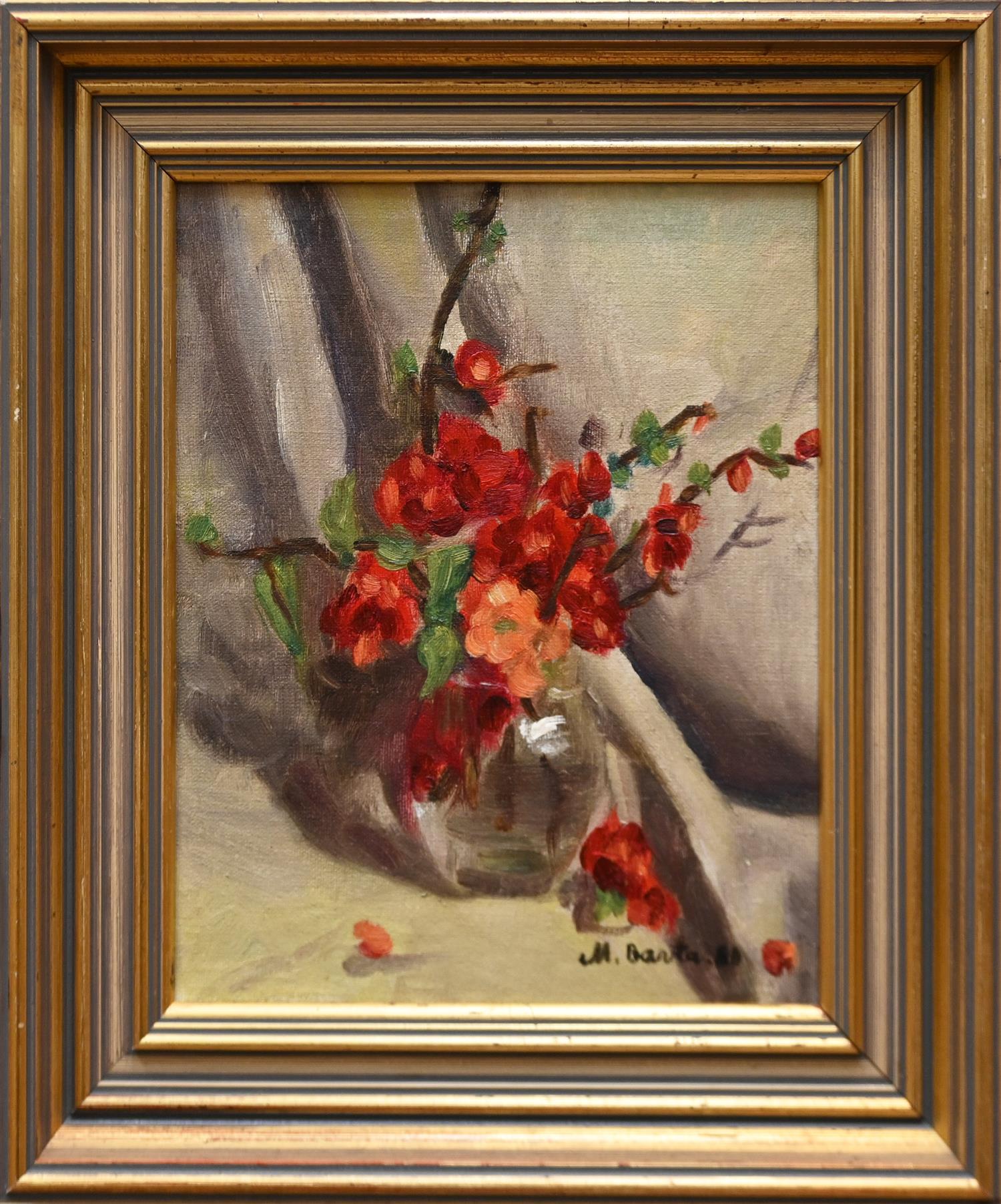 MARGARET BARTA, JAPONICA STILL LIFE, OIL ON BOARD, SIGNED LOWER RIGHT, 29 X 24CM, FRAME SIZE: 41 X 36CM