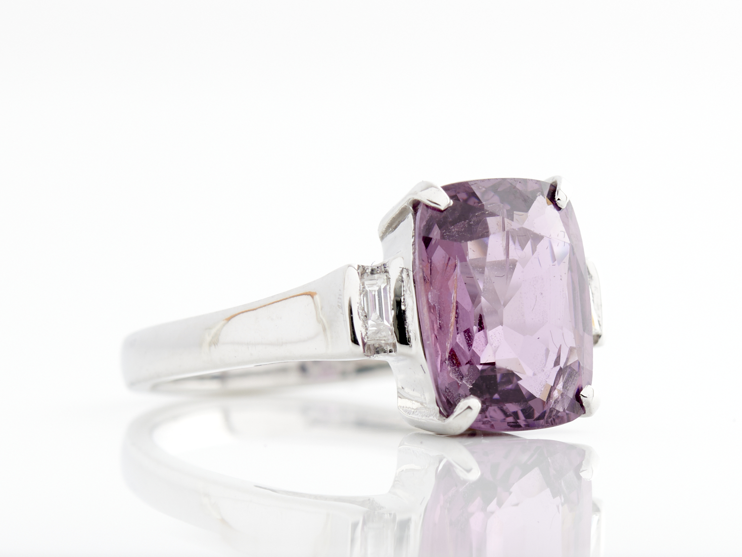 A SPINEL AND DIAMOND RING IN 18CT WHITE GOLD, THE SPINEL WEIGHING 2.4CTS, SIZE M, 3.7GMS