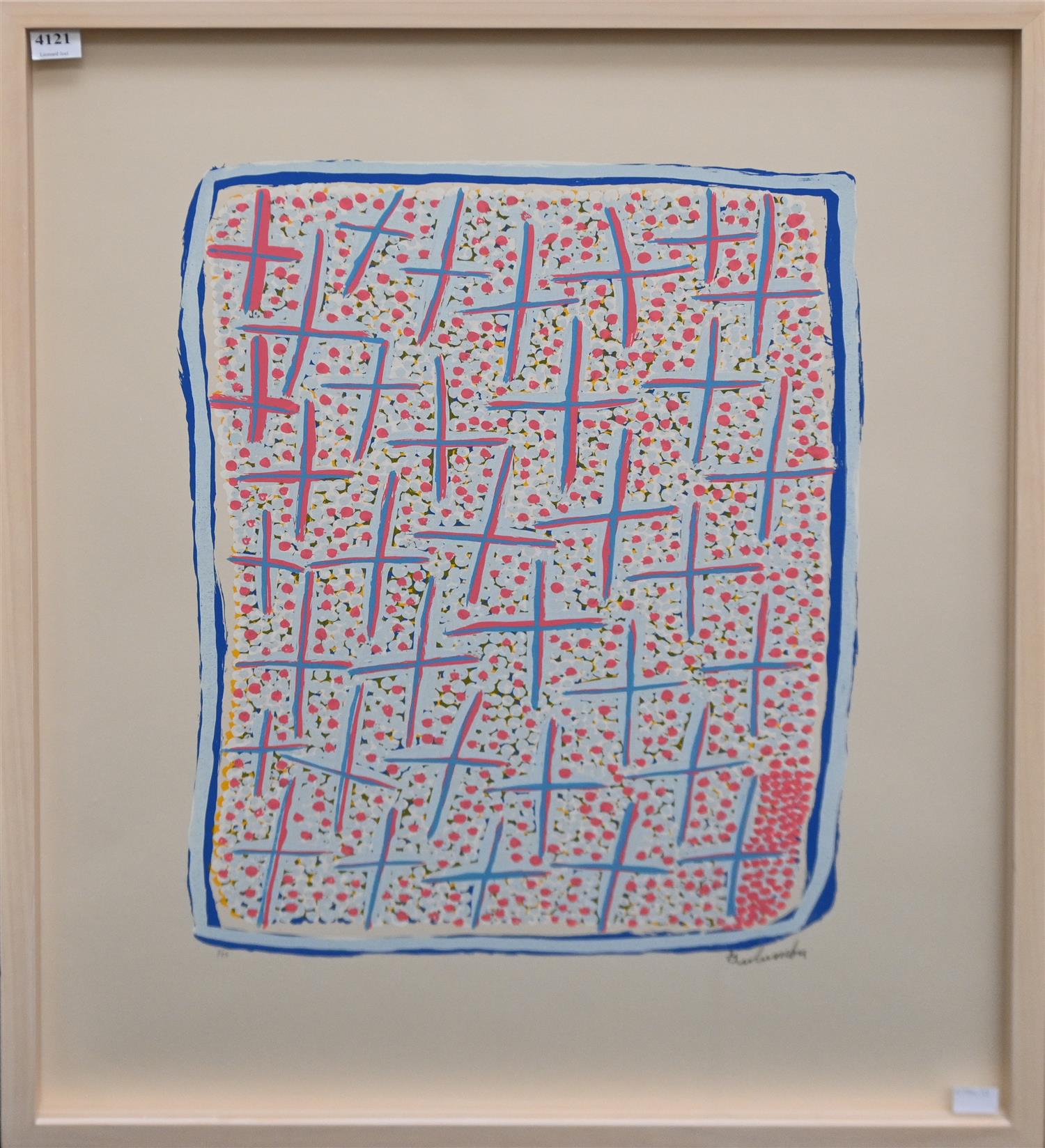 GULUMBU YUNUPINGU, THE GARAK (NIGHT AND FIRE SKY) I 2002, SCREENPRINT ED. 7/25, SIGNED AND EDITIONED BELOW IMAGE, 48 X 33.5CM, FRAME SIZE: 69.5 X 54CM