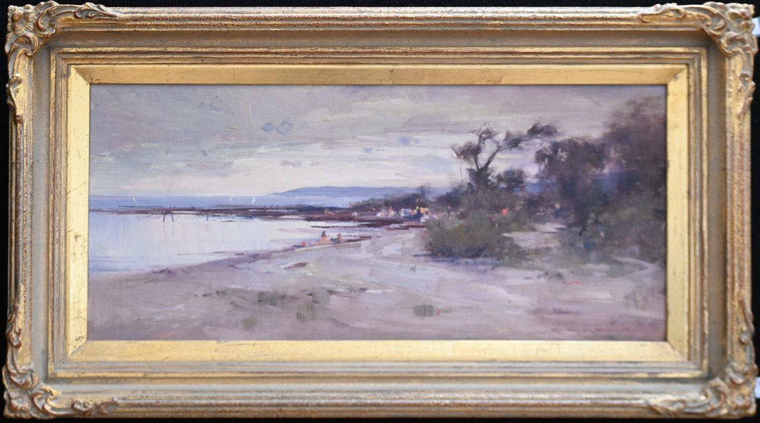 KEN KNIGHT, RICKETTS POINT, OIL ON BOARD, SIGNED LOWER RIGHT, TITLED VERSO, 28 X 58.5CM, FRAME SIZE: 37.5 X 68.5CM
