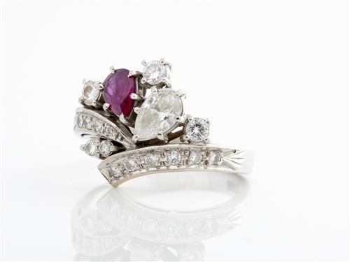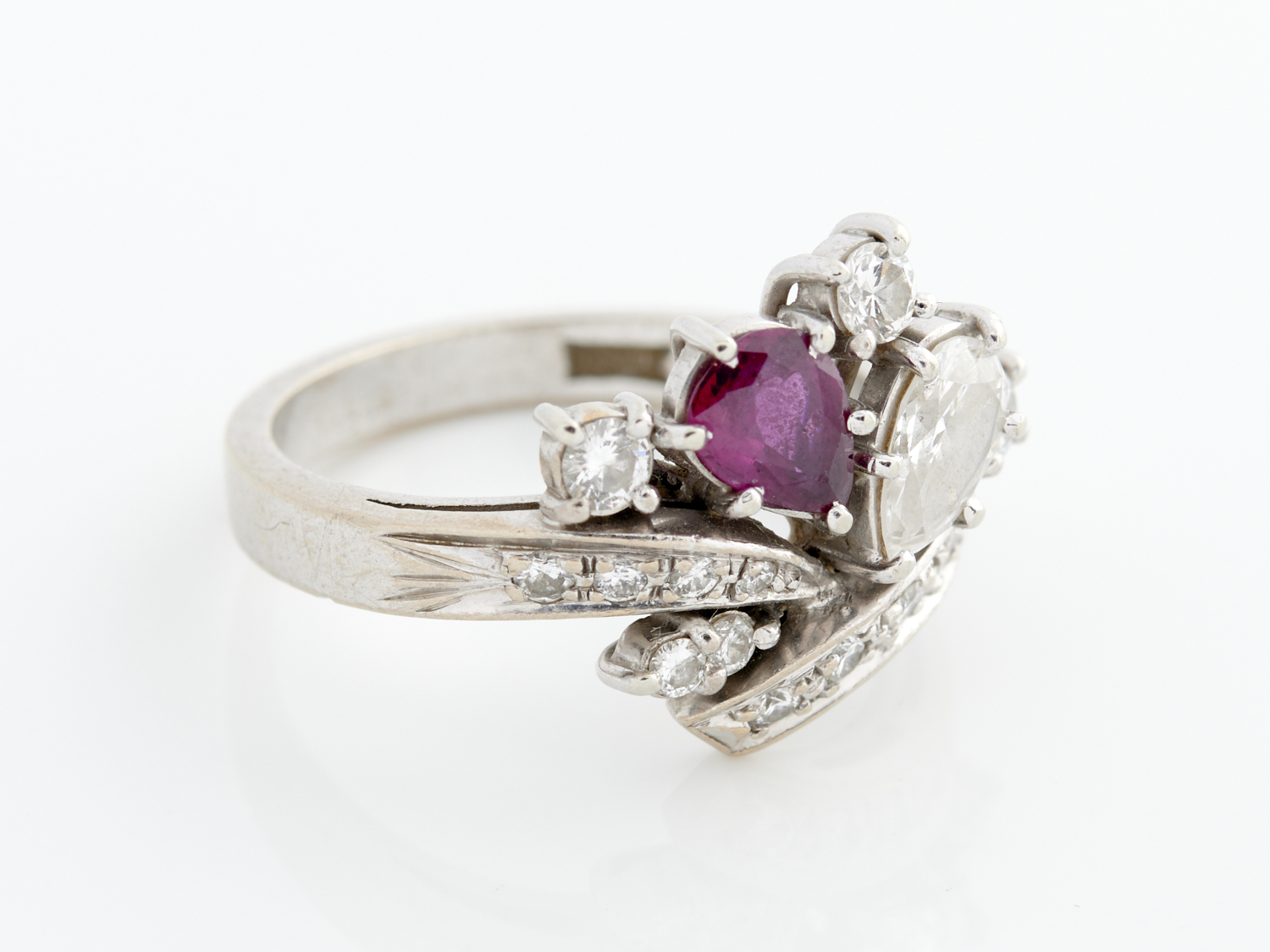 A RUBY AND DIAMOND RING 18CT WHITE GOLD