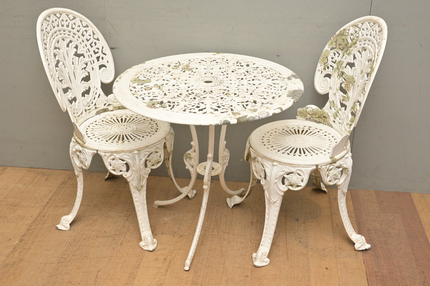 A 1960S AUSTRALIAN MADE METAL THREE-PIECE OUTDOOR SETTING (A/F) (65H X 70DIAM CM) (LEONARD JOEL DELIVERY SIZE: X-LARGE)