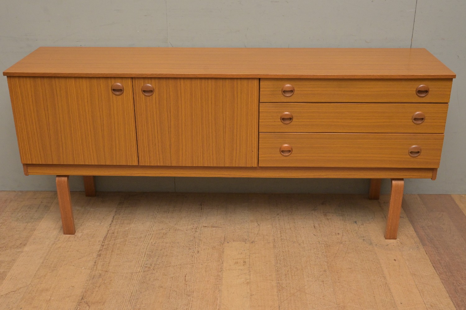 A 1960s ENGLISH SIDEBOARD BY SCHREIBER (76H X 175W X 43D CM) (PLEASE NOTE THIS HEAVY ITEM MUST BE REMOVED BY CARRIERS AT THE CUSTOMER'S EXPENSE. LEONARD JOEL STAFF CANNOT ASSIST CARRYING THIS ITEM) (LARGE ITEM)