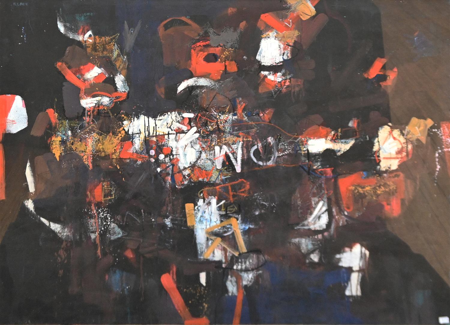 The sheet is sitting directly against the perspex, which over time has result in minor fragments of pigment adhering to the perspex and flaking from the sheet.