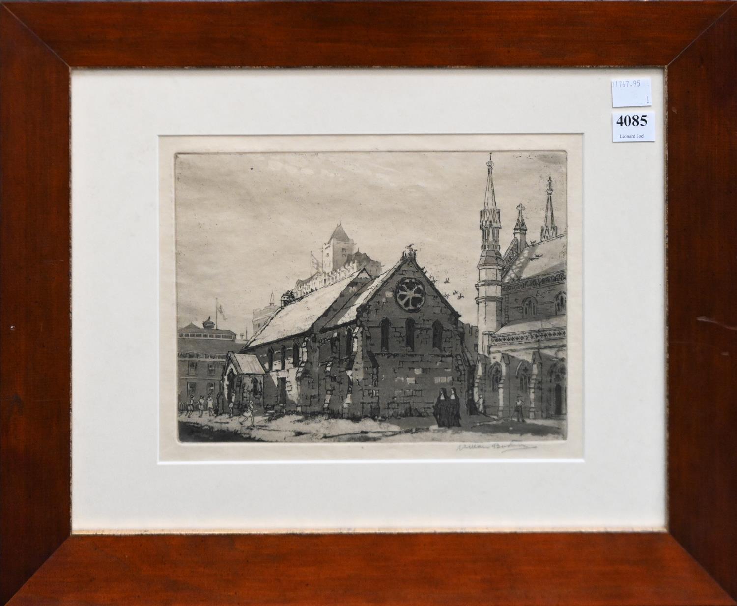 WILLIAM BUSTARD, CHURCH SCENE, ETCHING, SIGNED LOWER RIGHT, 17 X 22CM, FRAME SIZE: 35 X 43CM,