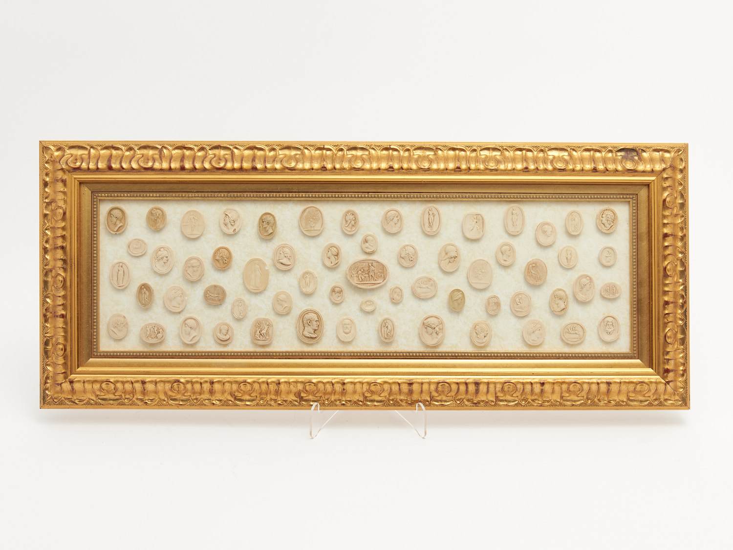 A GOLD FRAMED SET OF GRAND TOUR INTAGLIOS 29 X 71CM, LEONARD JOEL DELIVERY SIZE: SMALL