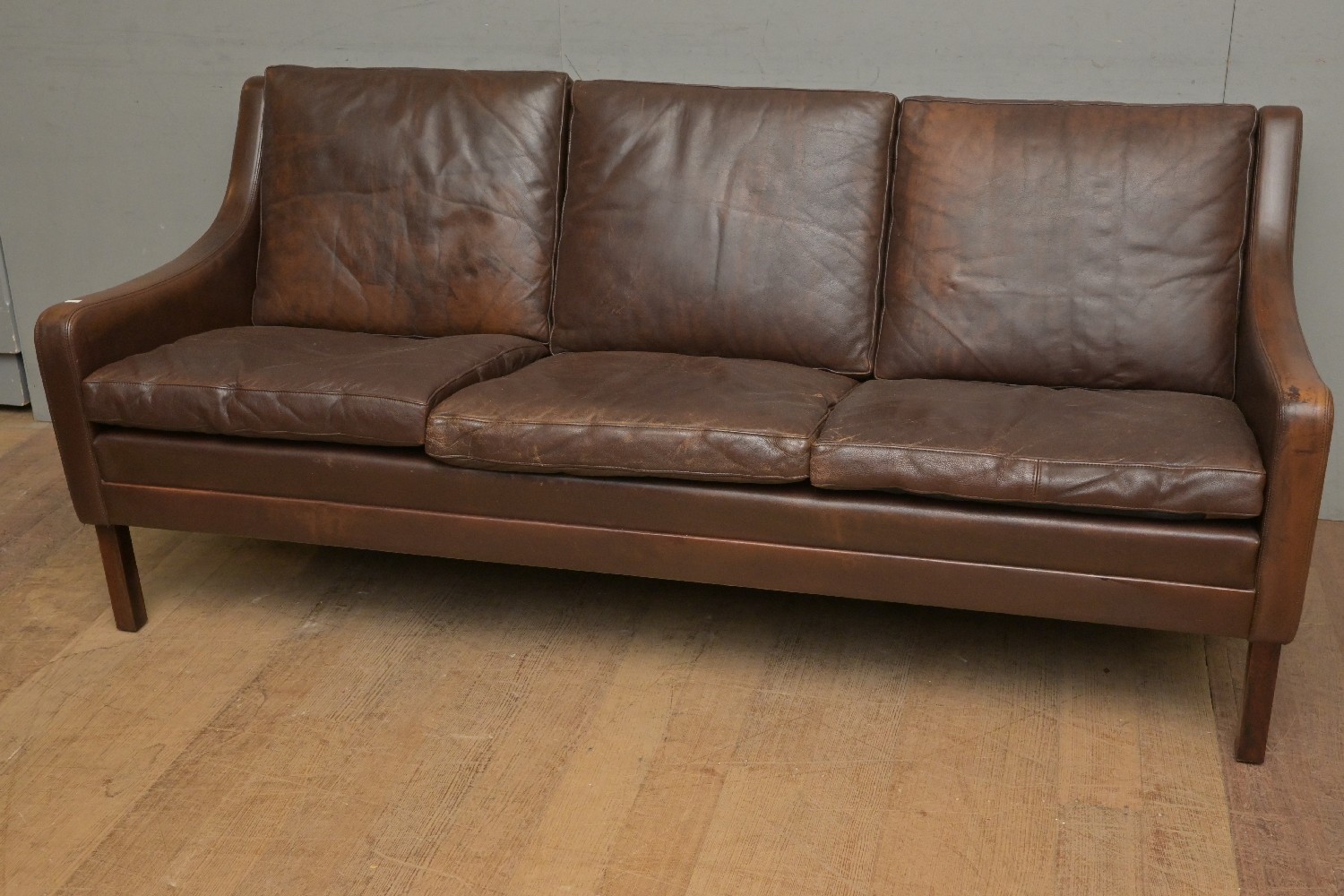 A DANISH 1960'S LEATHER SOFA (A/F) (80H X 175W X 74D CM) (PLEASE NOTE THIS HEAVY ITEM MUST BE REMOVED BY CARRIERS AT THE CUSTOMER'S EXPENSE. LEONARD JOEL STAFF CANNOT ASSIST CARRYING THIS ITEM) (LARGE ITEM)