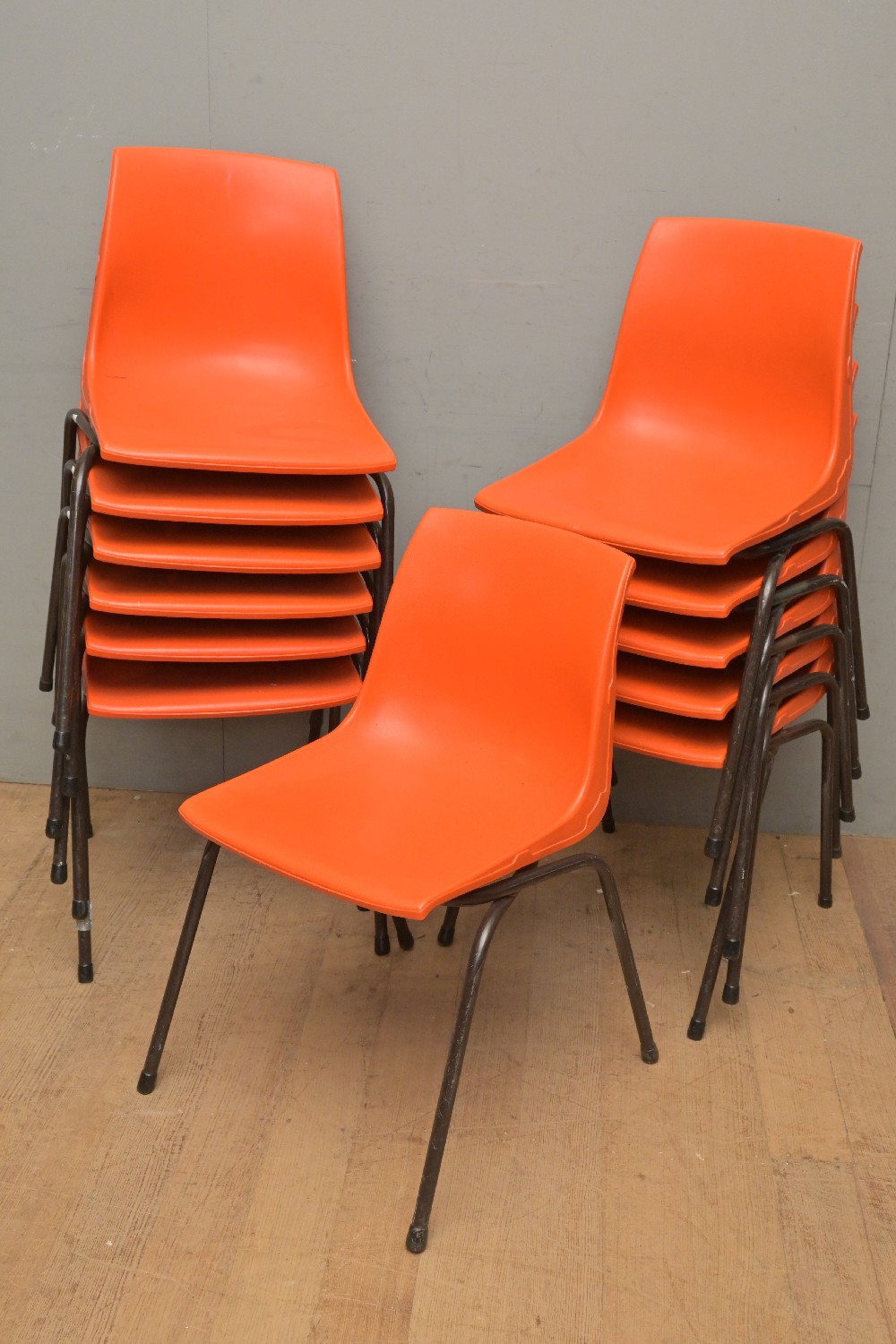 A SET OF TWELVE ORANGE CHAIRS (A/F) (76H X 47W X 50D CM) (LEONARD JOEL DELIVERY SIZE: X-LARGE)