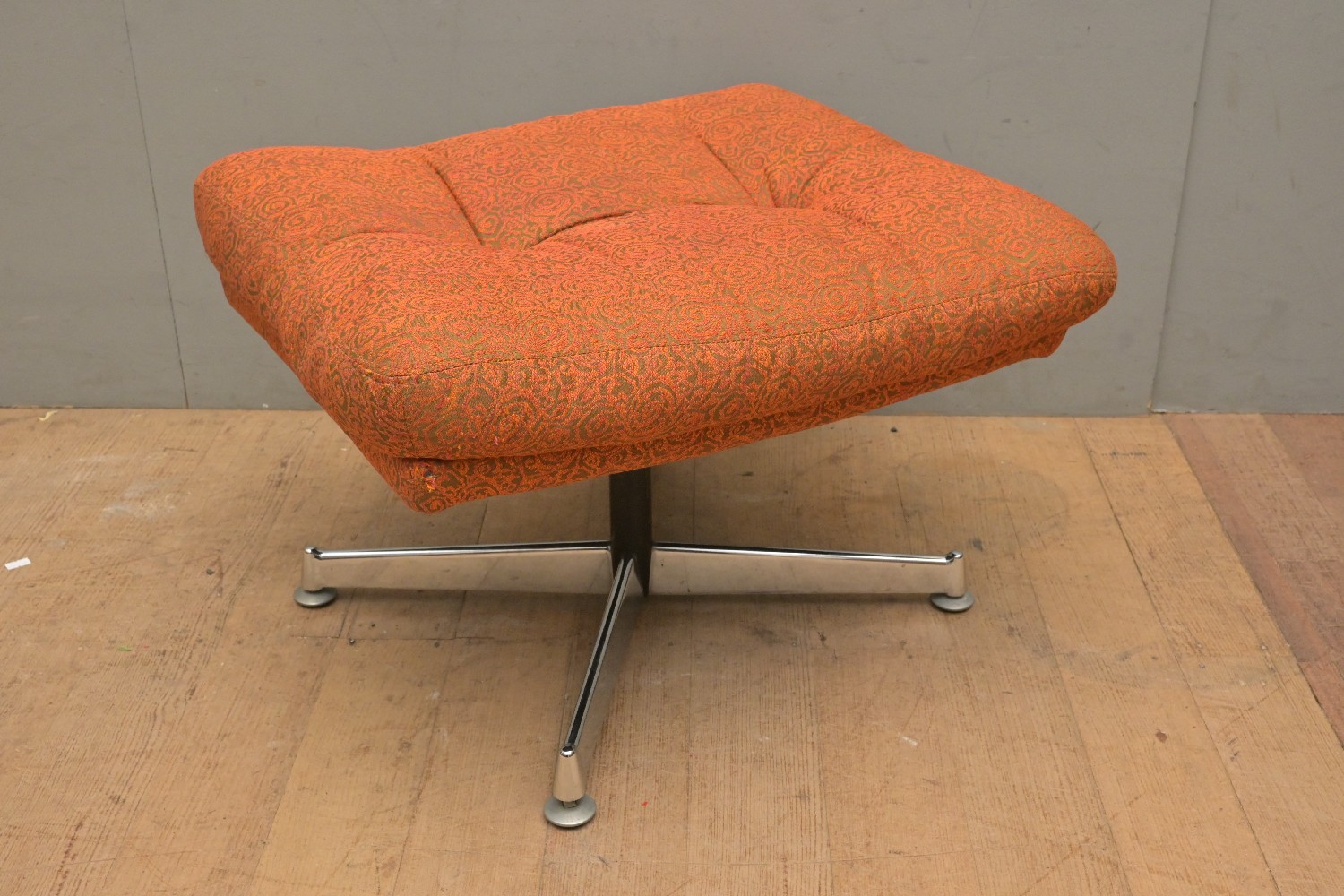 A CHROME AND BROCADE FOOTSTOOL (A/F) (40H X 60W X 54D CM) (LEONARD JOEL DELIVERY SIZE: LARGE)
