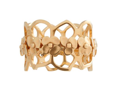 The wide openwork band centring a flower head motif within an openwork surround, signed Chaumet and numbered 1304733, size O-Q.
