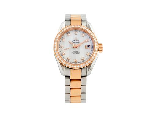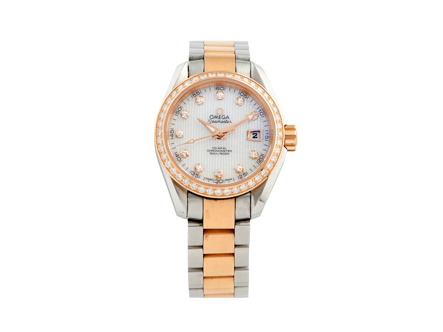OMEGA SEAMASTER AQUA TERRA REF 23125302055001 A LADY'S 18CT GOLD, STAINLESS STEEL AND DIAMOND-SET WATCH WITH DATE AND BRACELET SOLD 2010
