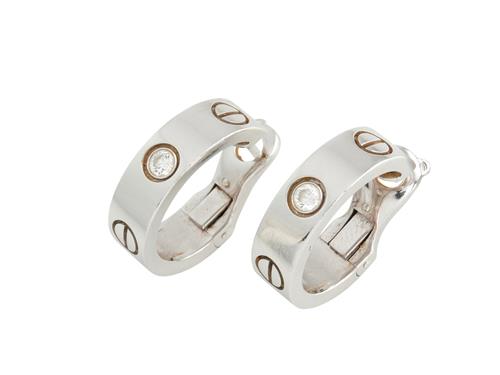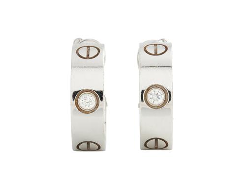 CARTIER, PAIR OF 18CT WHITE GOLD AND DIAMOND 'LOVE' EARRINGS