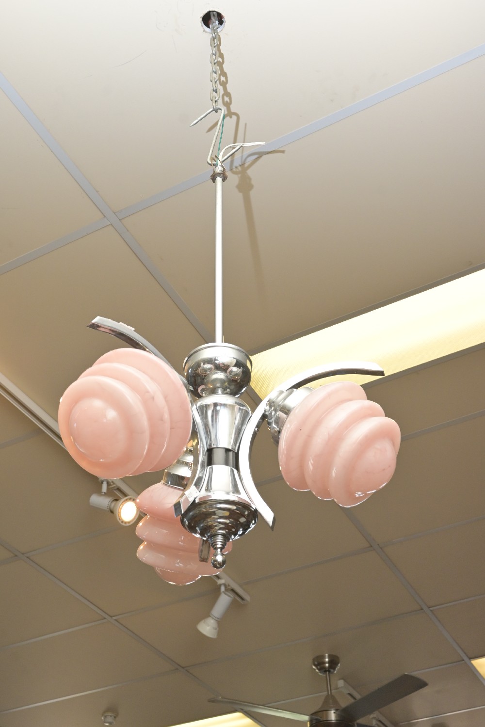 AN ART DECO LIGHT FITTING WITH PINK SHADES (77H X 30D CM) (LEONARD JOEL DELIVERY SIZE: LARGE)