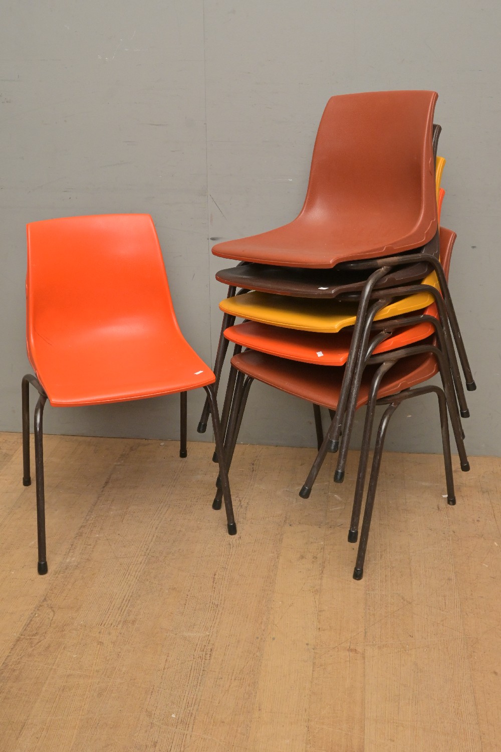 A SET OF SIX STACKING SEBEL 'SLIM COMFY' METAL AND PLASTIC CHAIRS (A/F) (76H X 47W X 50D CM) (LEONARD JOEL DELIVERY SIZE: X-LARGE)