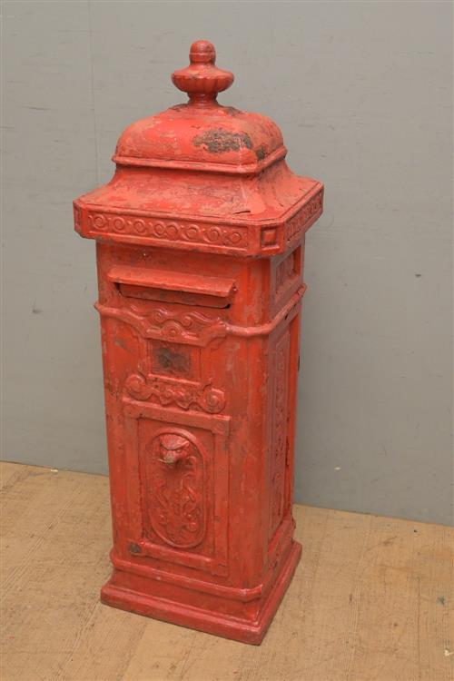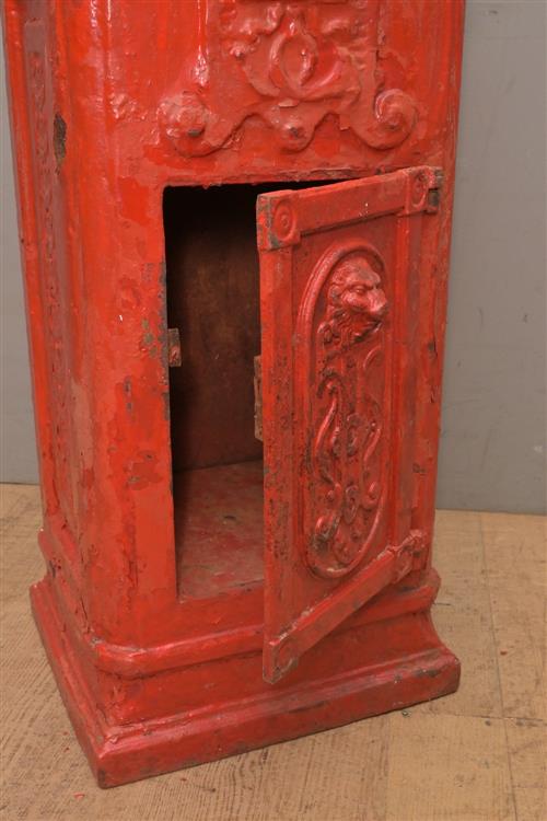 A LATE 19th CENTURY FRENCH CAST IRON POST BOX, WITH DOOR AND INTERNAL HINGED FLAP (A/F) (117H X 39W X 36D CM) (THIS HEAVY ITEM MUST BE REMOVED BY CARRIERS AT THE CUSTOMER'S EXPENSE. LEONARD JOEL STAFF WILL NOT ASSIST CARRYING THIS ITEM) (X-LARGE ITEM)