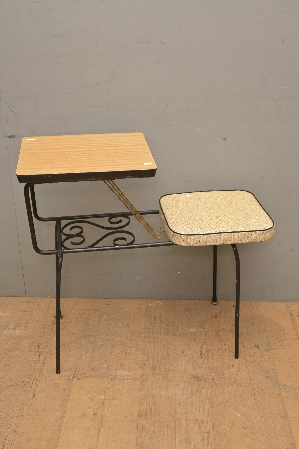 AN AUSTRALIAN WROUGHT IRON-FRAMED TELEPHONE TABLE BY JOHN R. HYMUS (A/F) (69H X 75W X 30D CM) (LEONARD JOEL DELIVERY SIZE: LARGE)