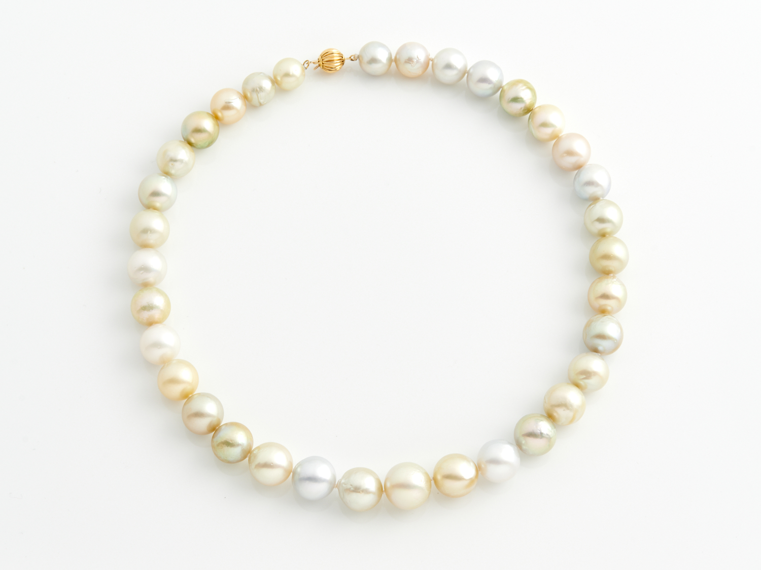 A STRAND OF GOLDEN SOUTH SEA PEARLS TO A CLASP IN 18CT GOLD, 440MM