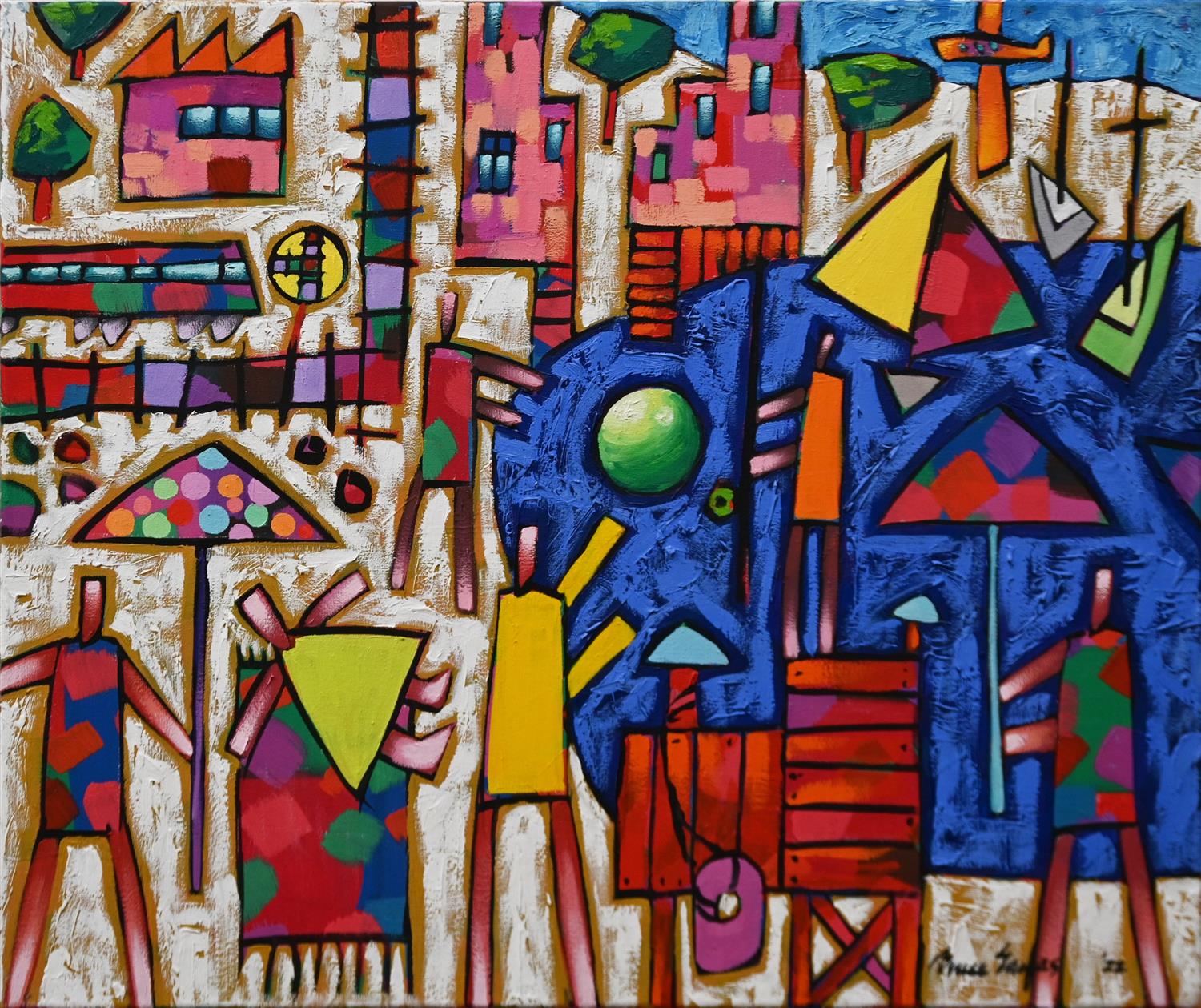 § BRUCE EARLES, JETTY JOY 2022, OIL ON CANVAS, SIGNED AND DATED LOWER RIGHT, 60 X 70CM