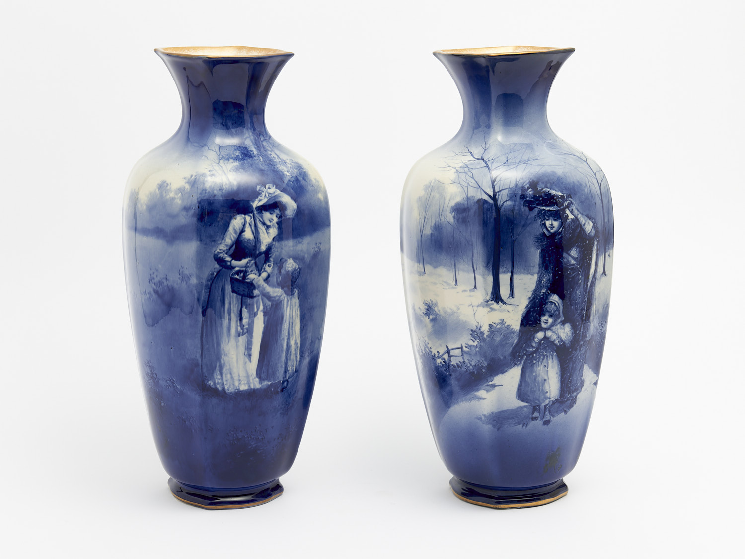 A PAIR OF ENGLISH PORCELAIN ROYAL DOULTON BLUE CHILDREN MANTLE VASES H.43CM, LEONARD JOEL DELIVERY SIZE: LARGE