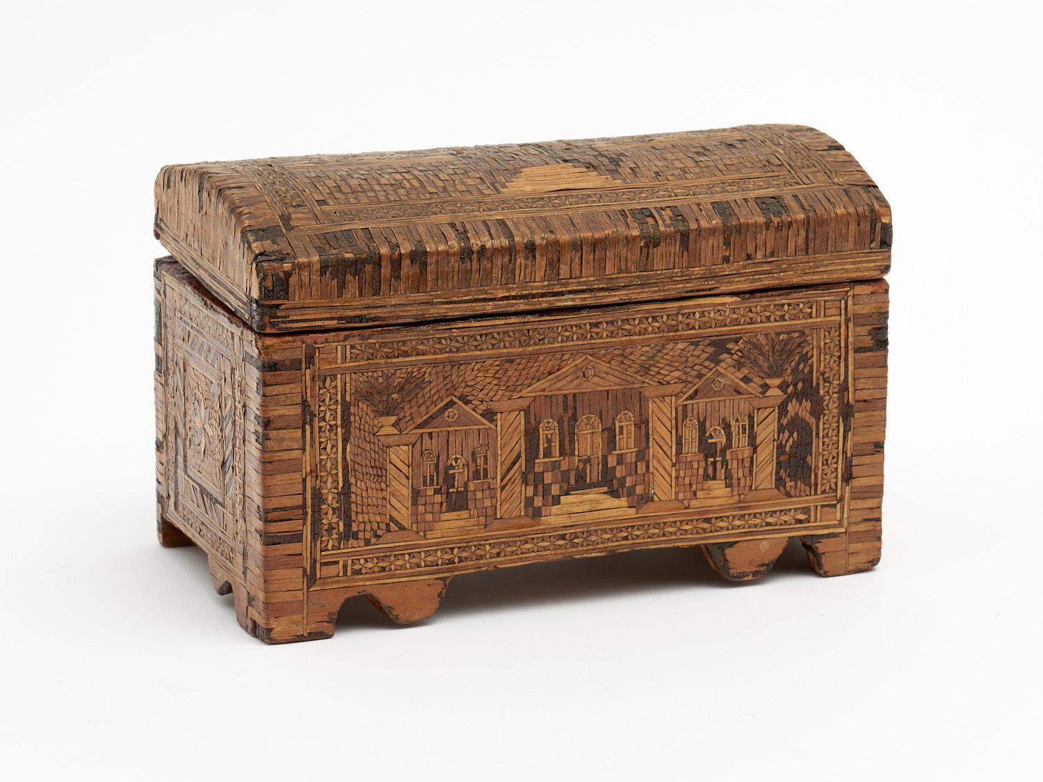 AN EARLY 19TH CENTURY NAPOLEONIC PRISONER OF WAR STRAW WORK CASKET W.19CM, LEONARD JOEL DELIVERY SIZE: SMALL