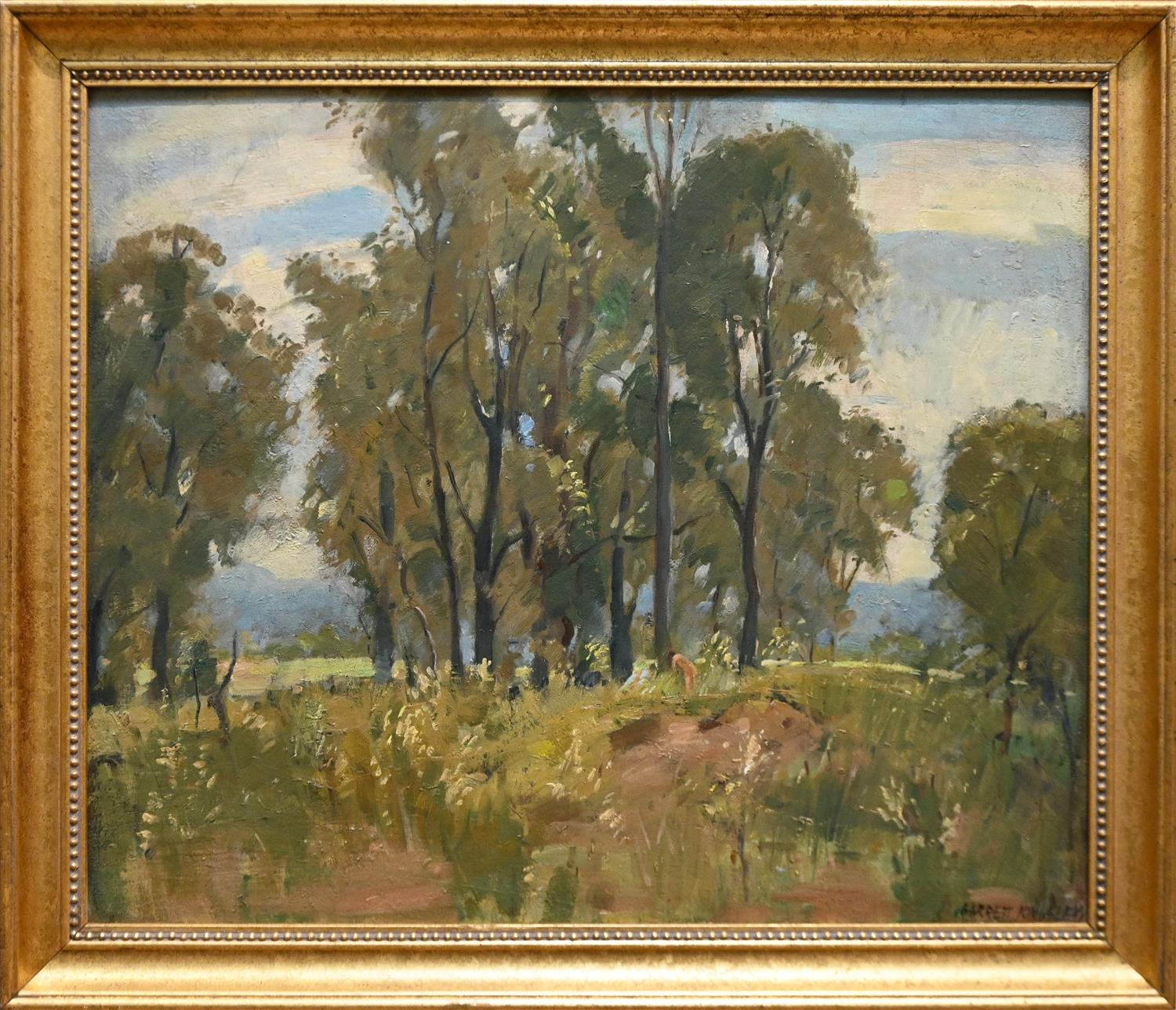 GARRETT KINGSLEY, LANDSCAPE WITH FIGURE, OIL ON CANVAS, SIGNED LOWER RIGHT, 50 X 60CM, FRAME SIZE: 60 X 69CM