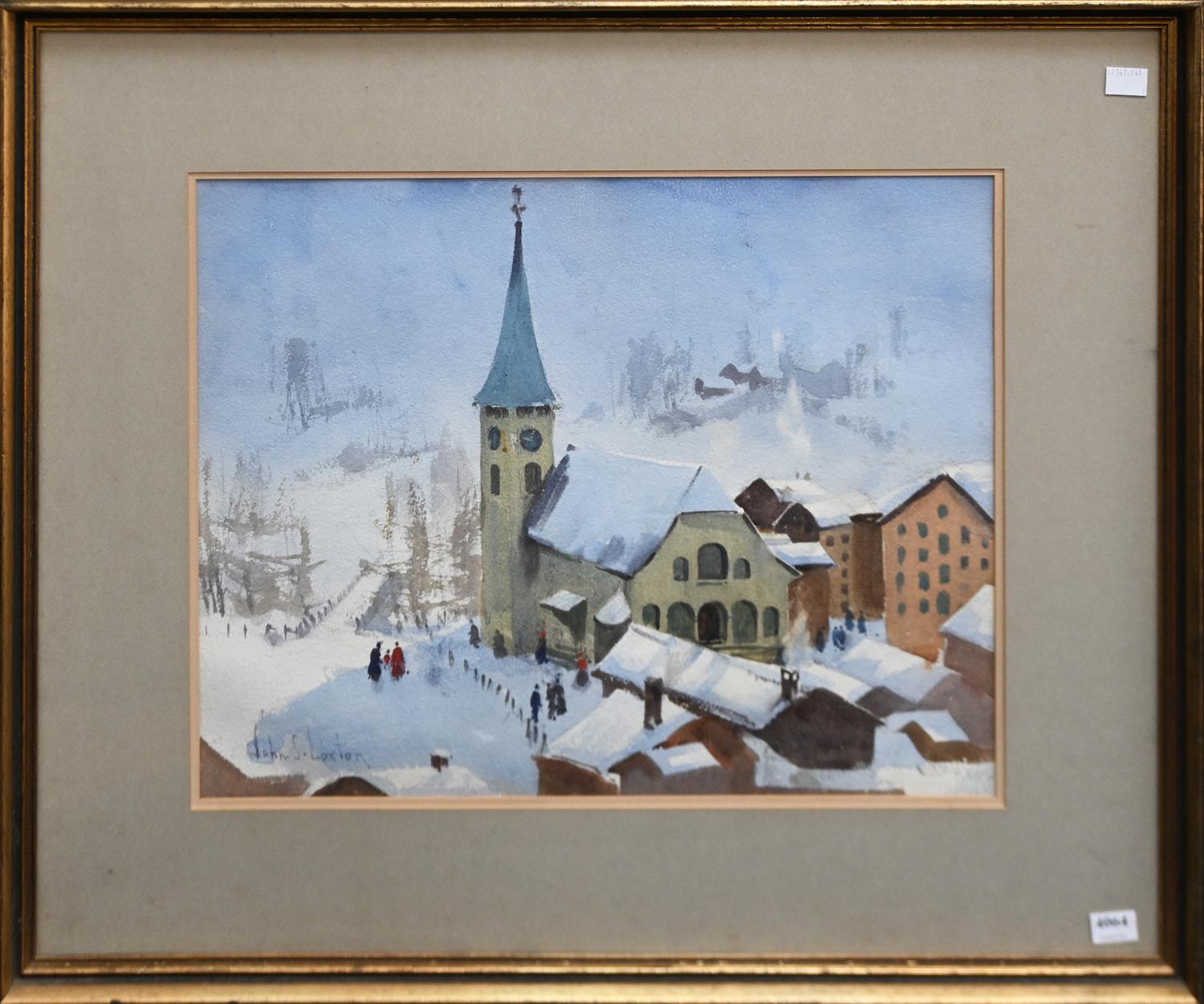 JOHN LOXTON, EUROPEAN WINTER LANDSCAPE, WATERCOLOUR ON PAPER, SIGNED LOWER LEFT, 36.5 X 45CM, FRAMED: 59 X 67.5CM