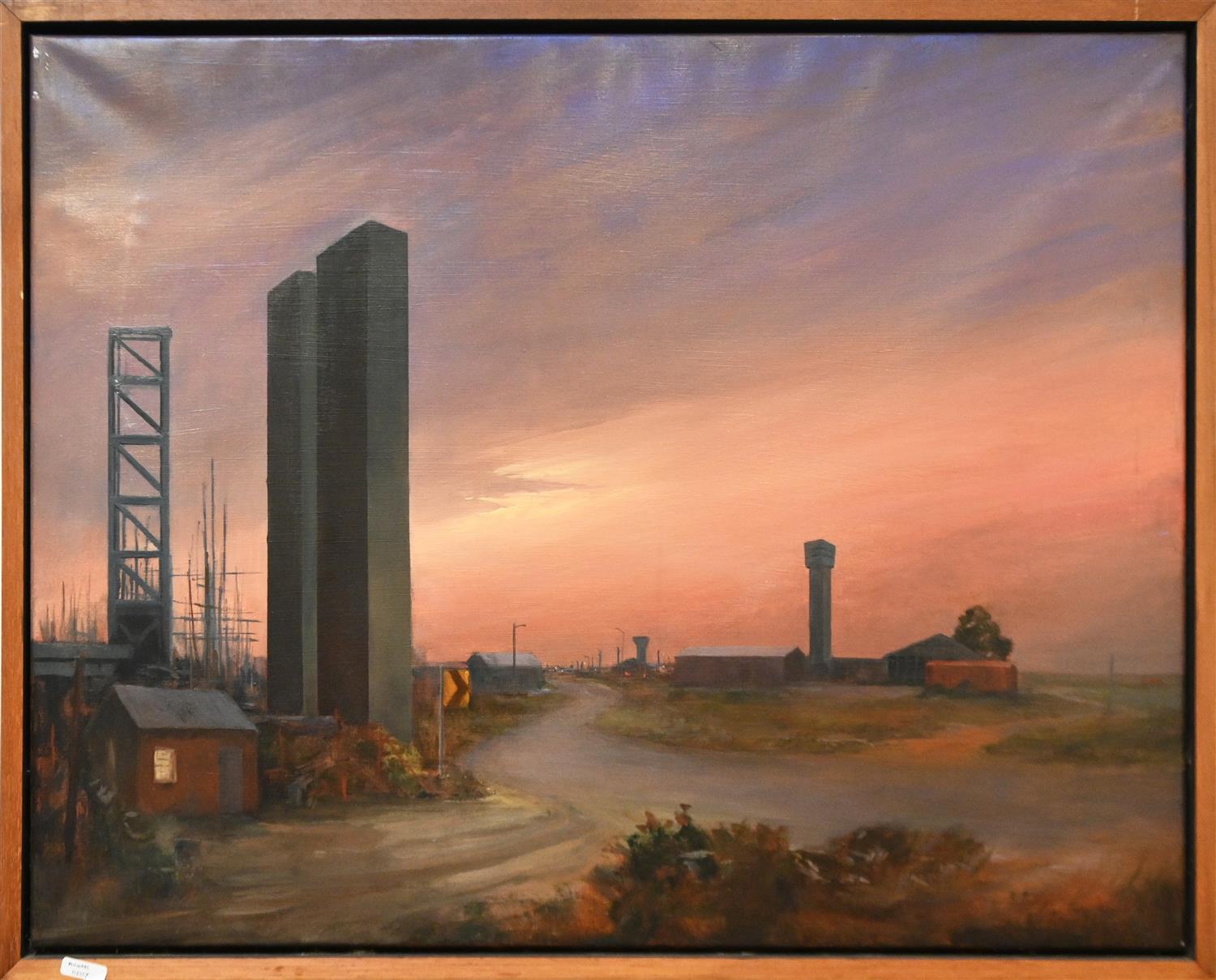 MICHAEL KELLY, THE PYLONS II 2001, OIL ON CANVAS, SIGNED, TITLED AND DATED VERSO, 71 X 91.5CM, FRAME SIZE: 76 X 96CM