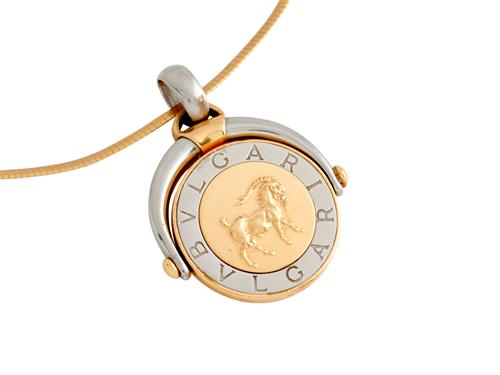 BULGARI, 18CT GOLD AND STAINLESS STEEL 'ZODIAC' PENDANT