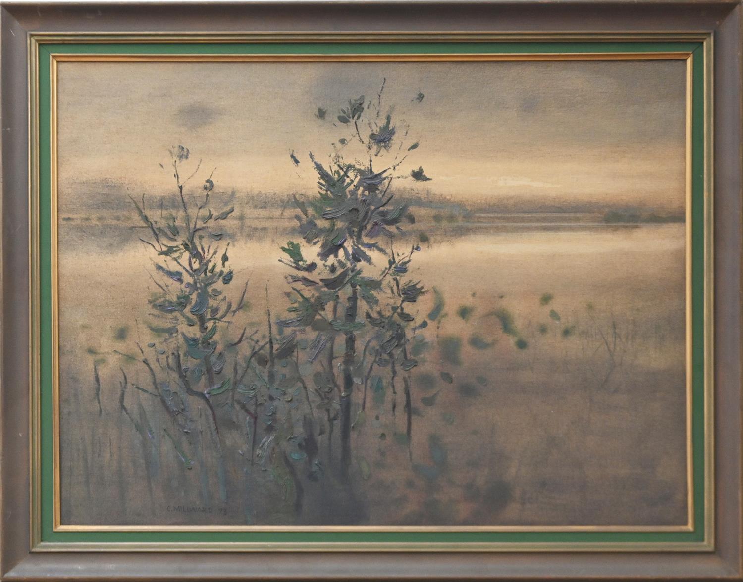 CLEM MILLWARD, DAWN CUDMIRRAH LAKE 1973, OIL ON CANVASBOARD, 55 X 74.5CM, FRAME SIZE: 68 X 88CM