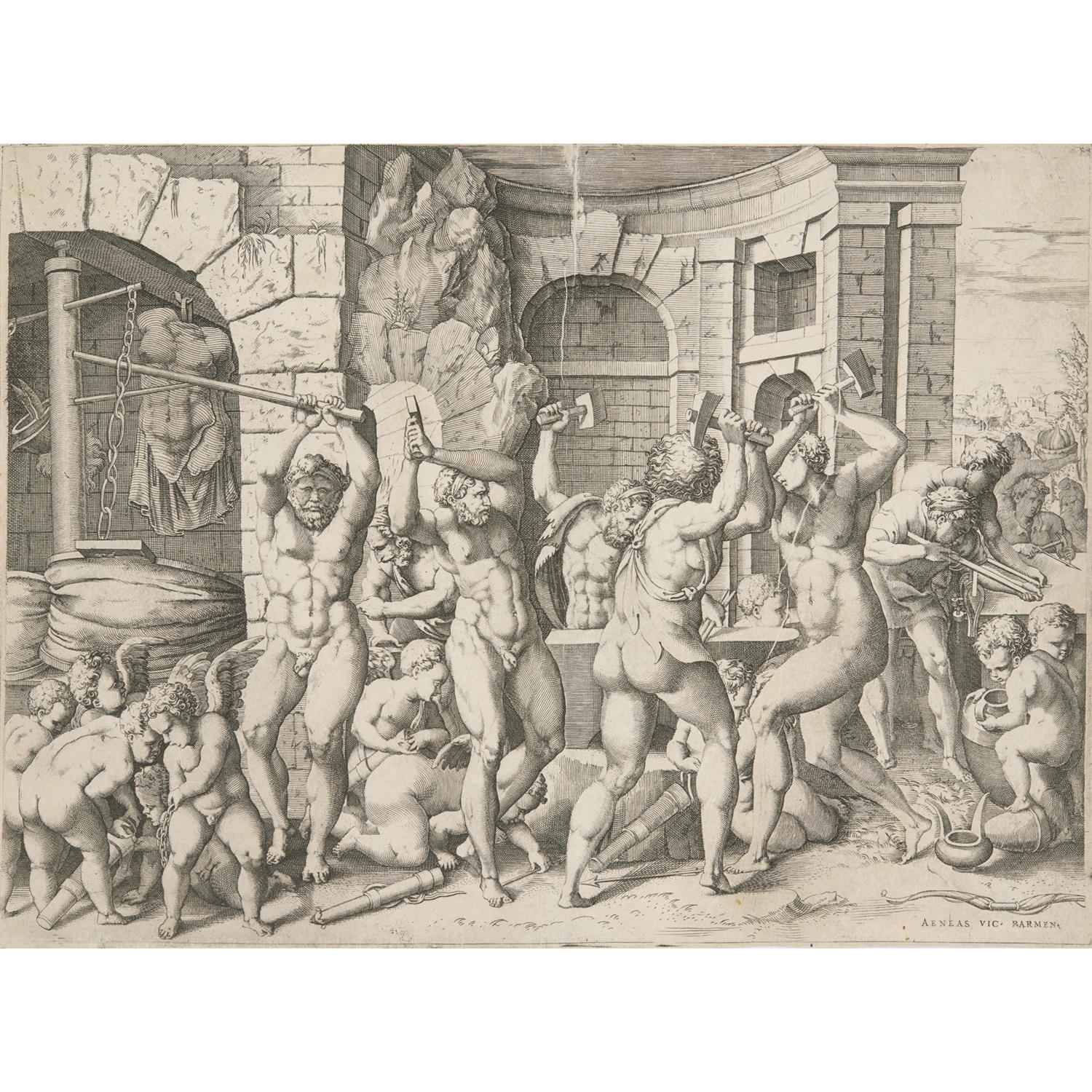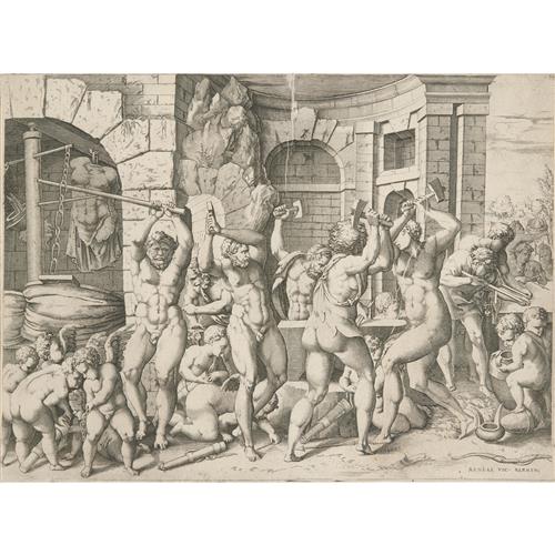 Vulcan and the Cyclops Forging Arrows for the Cupids (After Francesco Primaticcio) c.1543-1545