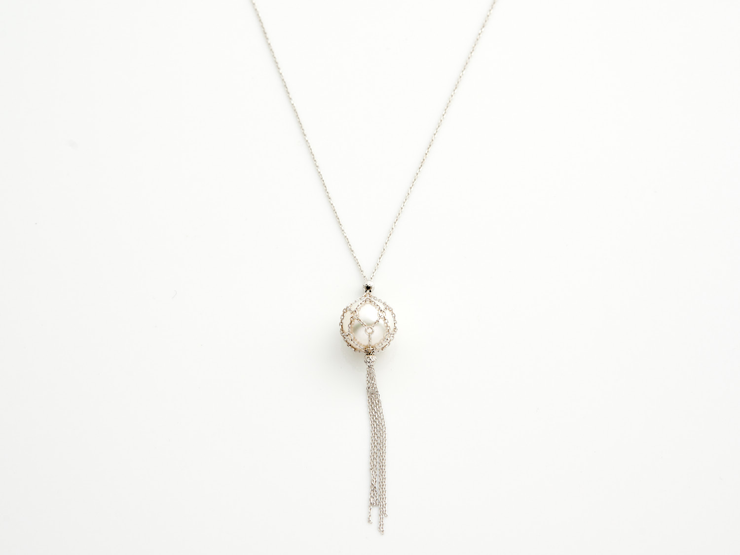 A PEARL LAVALIER PENDANT NECKLACE IN 18CT WHITE GOLD, THE CHAIN 450MM, 5.0GMS