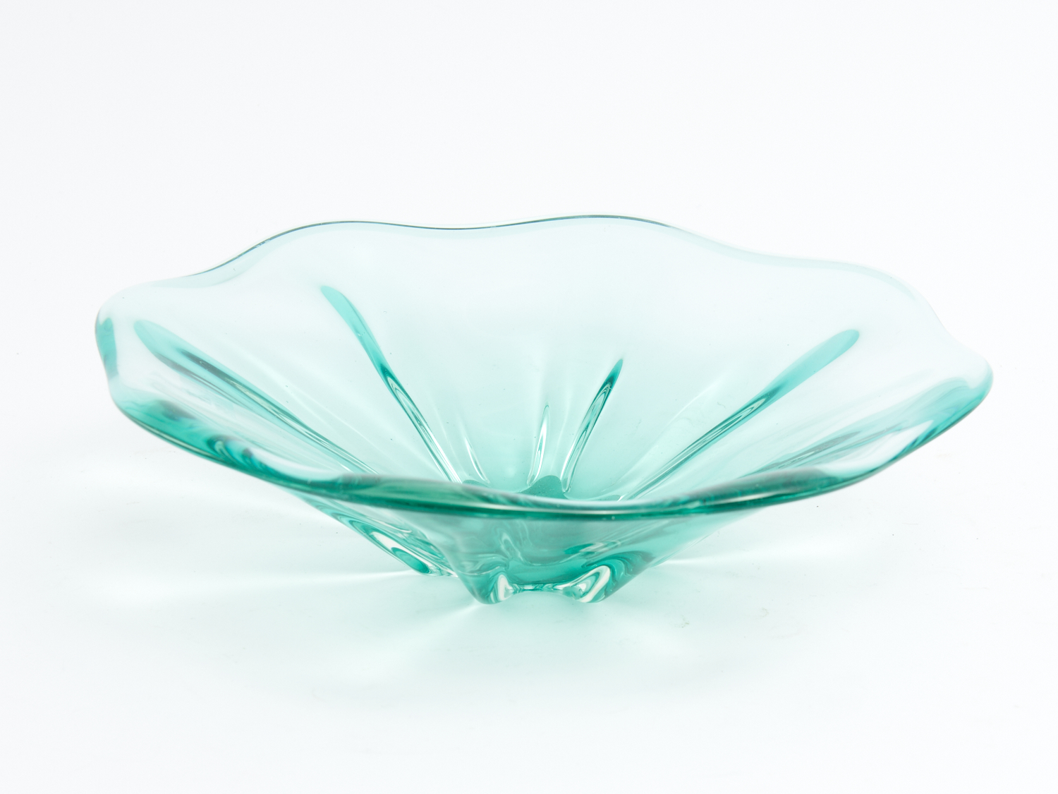 A GREEN GLASS BOWL DIA.33CM, LEONARD JOEL DELIVERY SIZE: SMALL