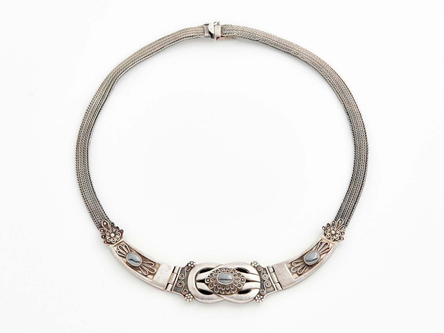 A VINTAGE HEMATITE NECKLACE IN STERLING SILVER, APPROXIMATELY 400MM, 48GMS