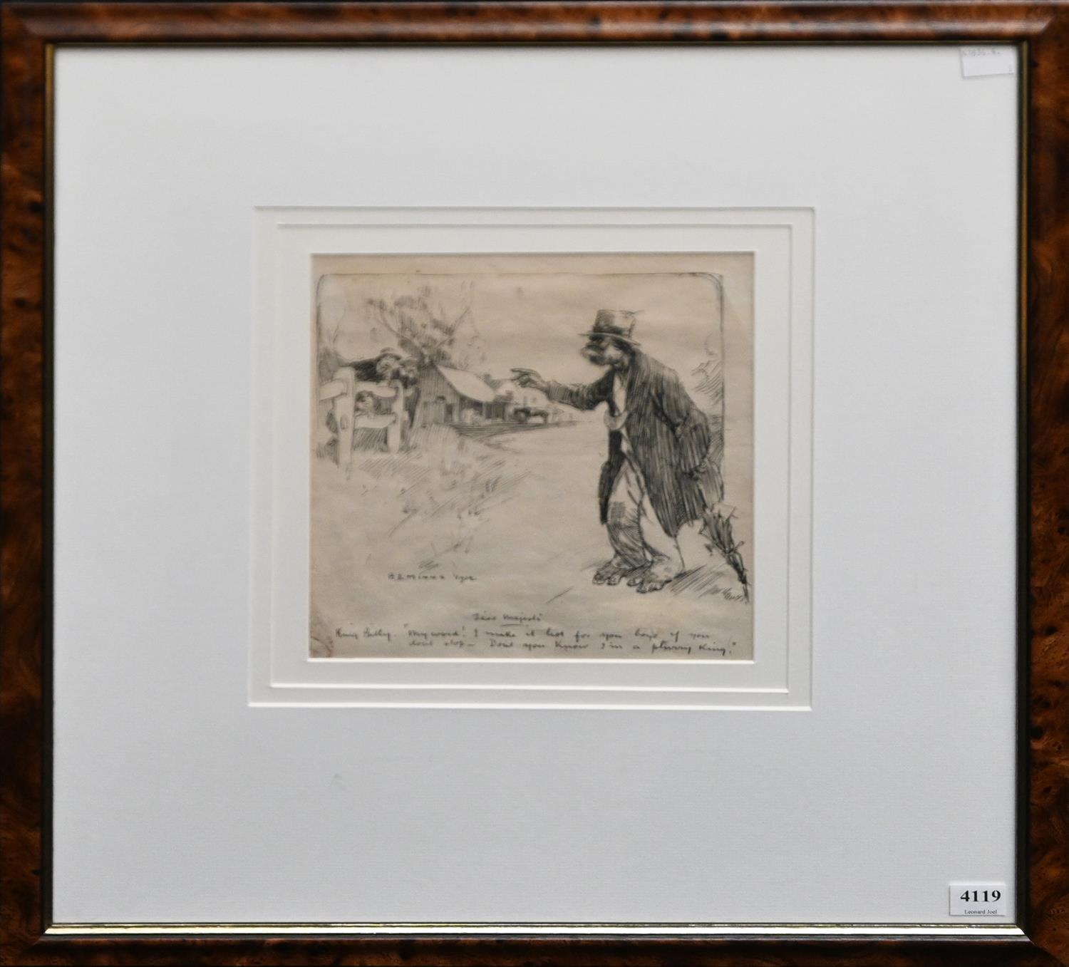 B.E. MINNS, LES MAJESTES 1912, INK ON PAPER, SIGNED AND DATED LOWER RIGHT, TITLED BELOW IMAGE, 22.5 X 20CM, FRAME SIZE: 54.5 X 48CM