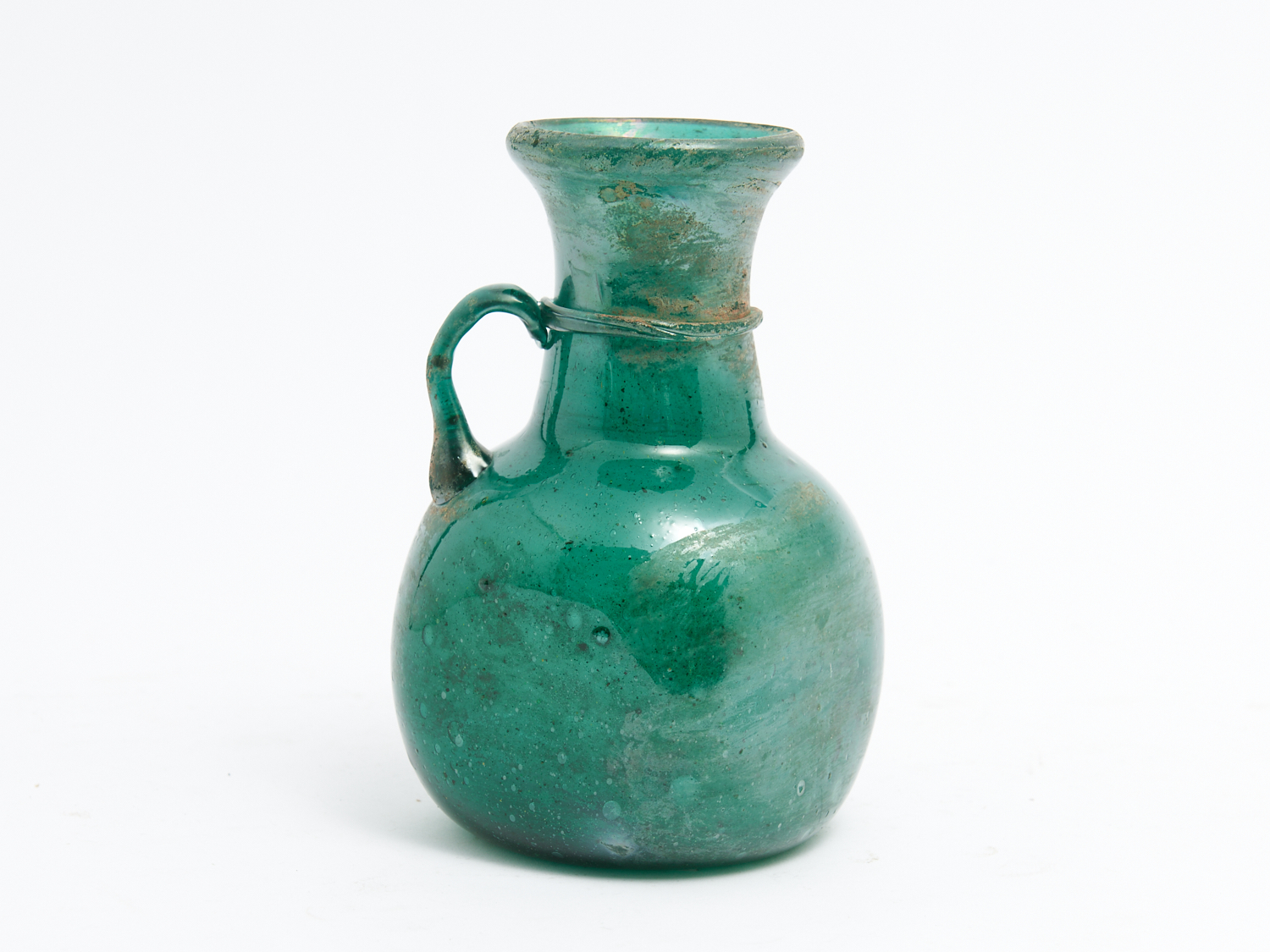 AN ANCIENT ROMAN STYLE GLASS JUG H.17.5CM, LEONARD JOEL DELIVERY SIZE: SMALL