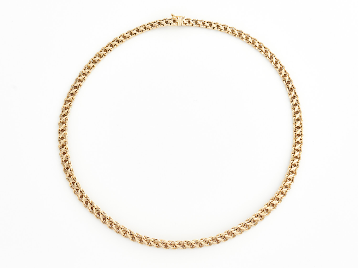 A FANCY LINK NECKLACE IN 14CT GOLD, 470MM, 44.3GMS