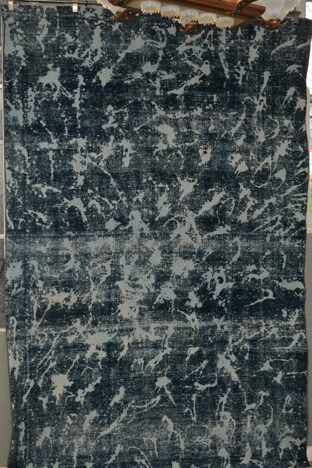 A PERSIAN TRANSITIONAL OVERDYED TABRIZ RUG. A CARPET CREATED FROM AN AUTHENTIC OLD RUG. OVER-DYED IN BLUE TONES TO GIVE A DISTRESSED MODERN LOOK. SIZE: 319 X 207 CM. ORIGIN: PERSIA - RRP: $2,500. DOCUMENTATION OF AUTHENTICITY INCLUDED