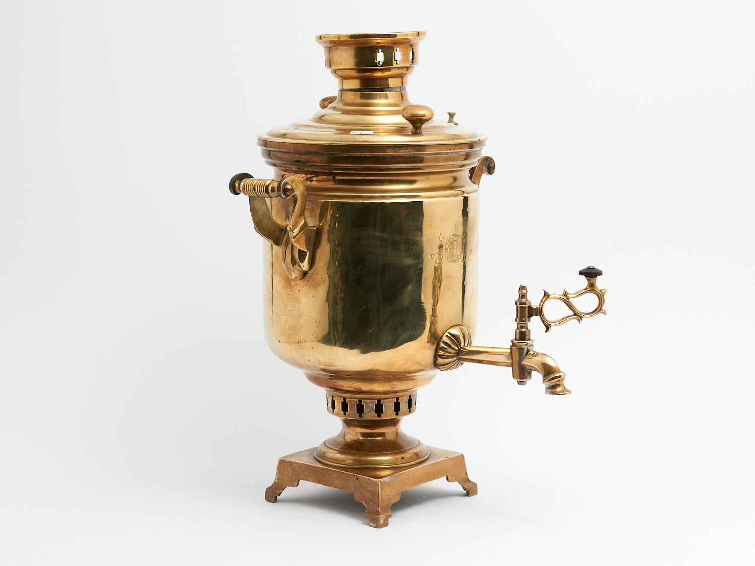 A RUSSIAN BRASS SAMOVAR H.47CM, LEONARD JOEL DELIVERY SIZE: MEDIUM