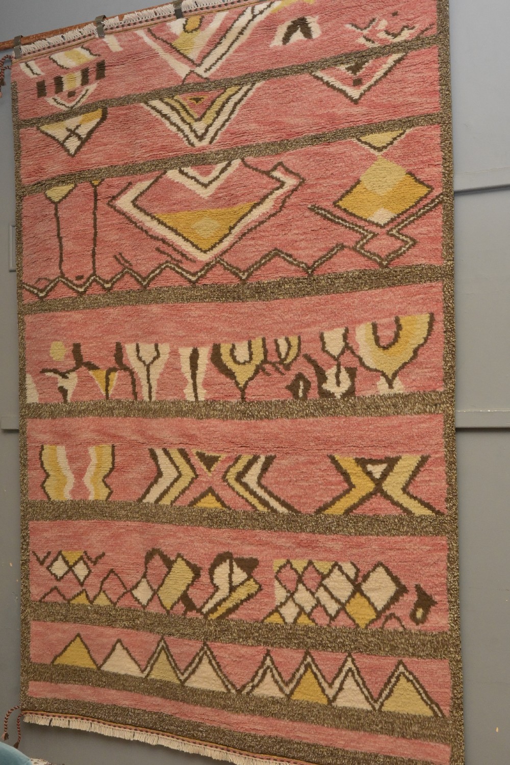 A BRAND-NEW MODERN MARRAKESH COLLECTION RUG, 100% WOOL, NATURAL DYES -WARP-WEFT PILE, HAND KNOTTED. DECORATIVE- FASHIONABLE SOFT PLUSH PILE, WITH A NOMADIC MEXICAN INFLUENCE. IN TONES OF SOFT RED, GOLD, IVORY, AND TAUPE. SIZE: 188 X 283 CM. ORIGIN: INDIA - RRP: $2,900. DOCUMENTATION OF AUTHENTICITY INCLUDED
