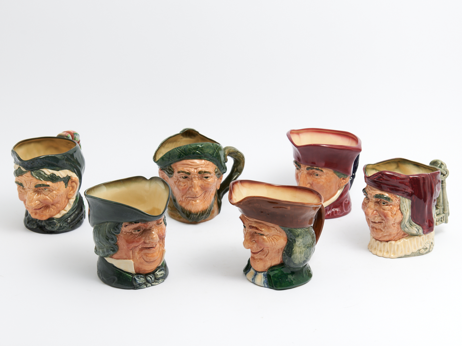 SIX ROYAL DOULTON CHARACTER JUGS INCLUDING SIMON THE CELLARER, THE CARDINAL, AND GRANNY H.15.5CM (TALLEST), LEONARD JOEL DELIVERY SIZE: MEDIUM
