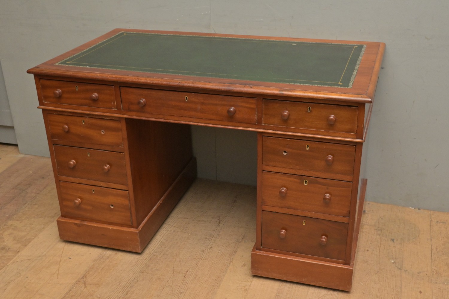 A SMALL VICTORIAN PEDESTAL DESK, WITH LEATHER-LINED TOP (A/F) (77H X 122W X 69D CM) (LEONARD JOEL DELIVERY SIZE: X-LARGE)