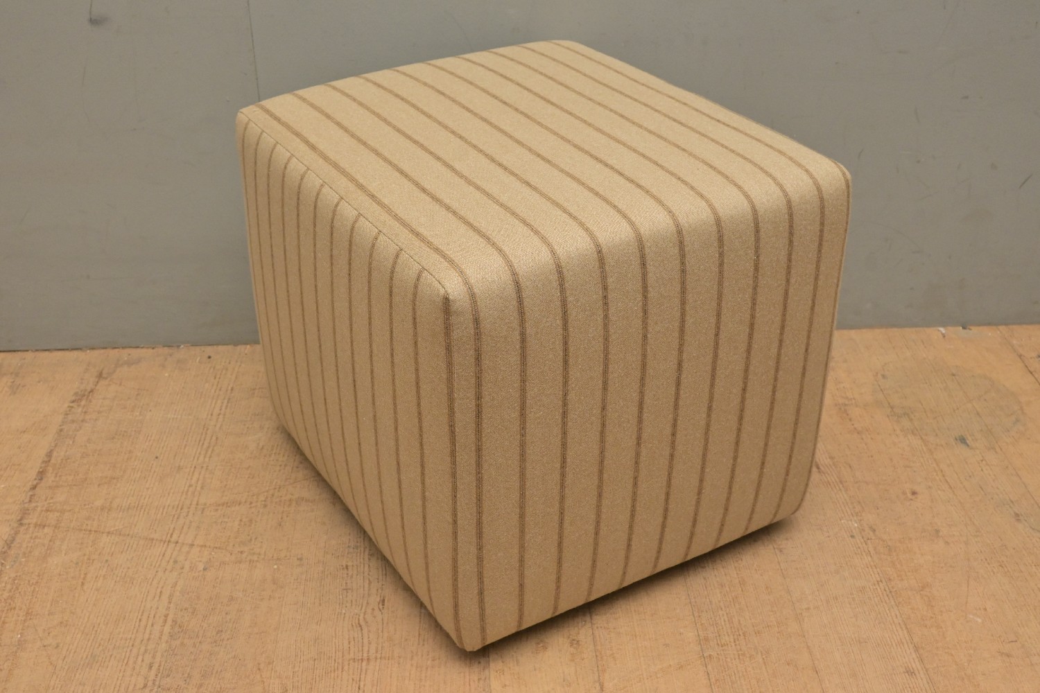 A FABRIC UPHOLSTERED OTTOMAN (44H X 46W X 51D CM) (LEONARD JOEL DELIVERY SIZE: LARGE)