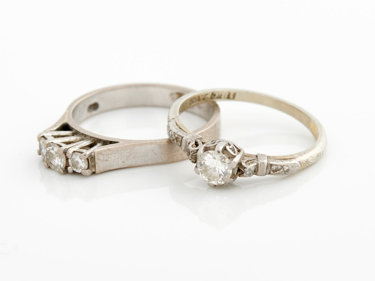 TWO DIAMOND RINGS IN 18CT WHITE GOLD, SIZE M-N, 5.8GMS