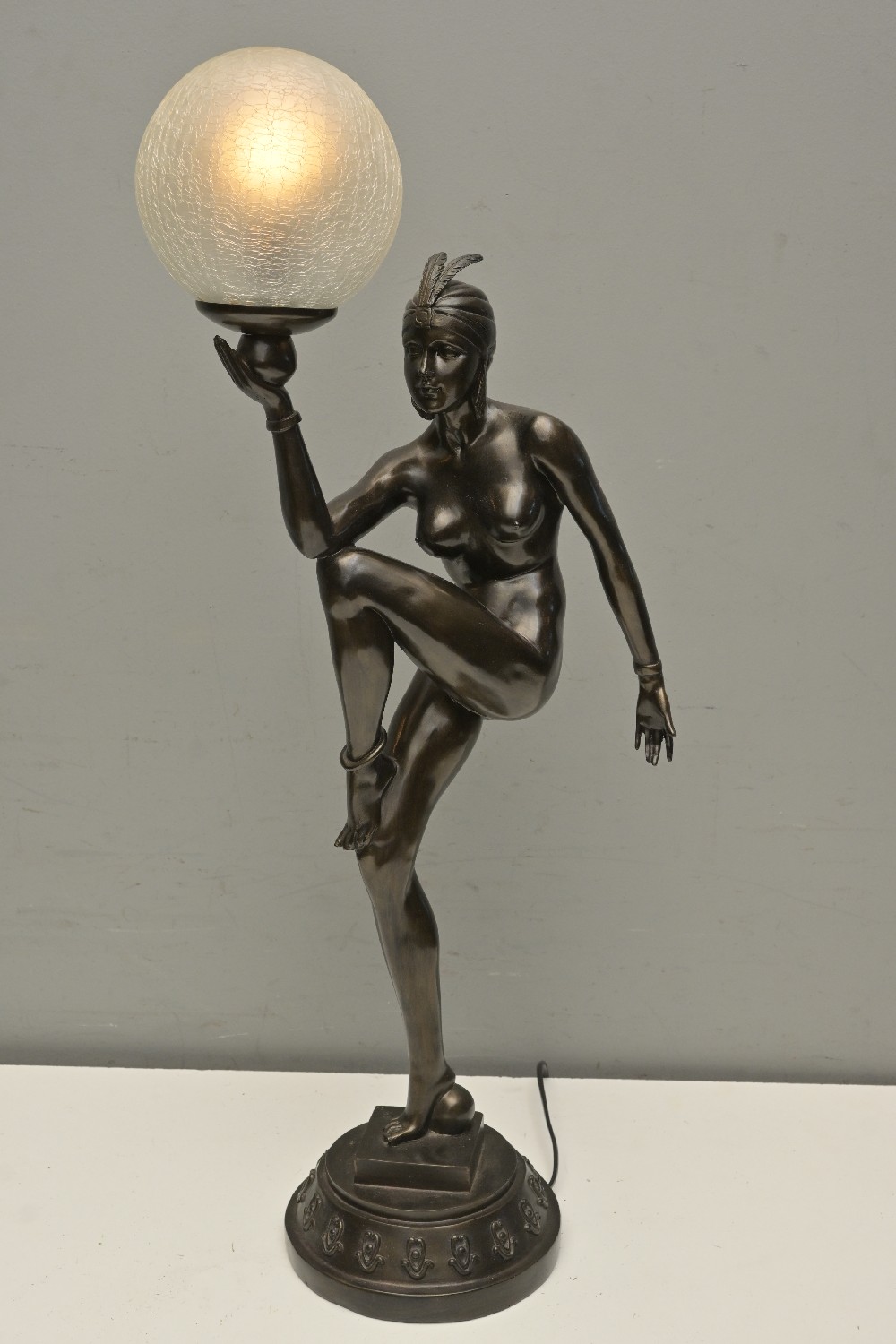 AN ART DECO STYLE FIGURAL TABLE LAMP (77H CM) (LEONARD JOEL DELIVERY SIZE: MEDIUM)